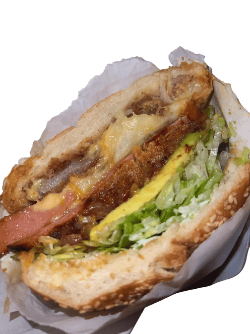 Sesame artisan bread, beans, breaded pork, ham, Jack Cheese, sausage, American cheese, marinated pork, marinated onions, tomatoes, avocado, lettuce, mayonnaise and chipotle