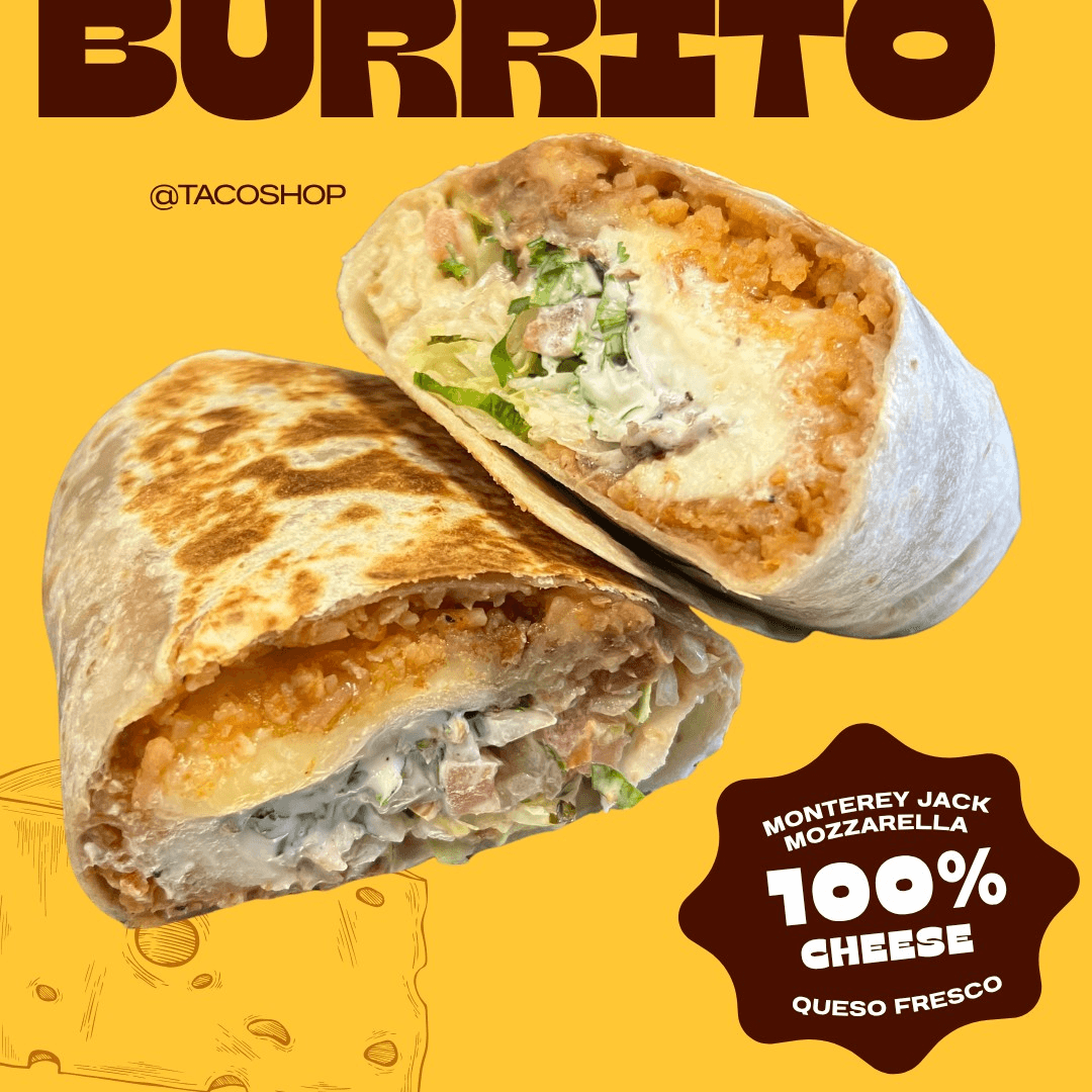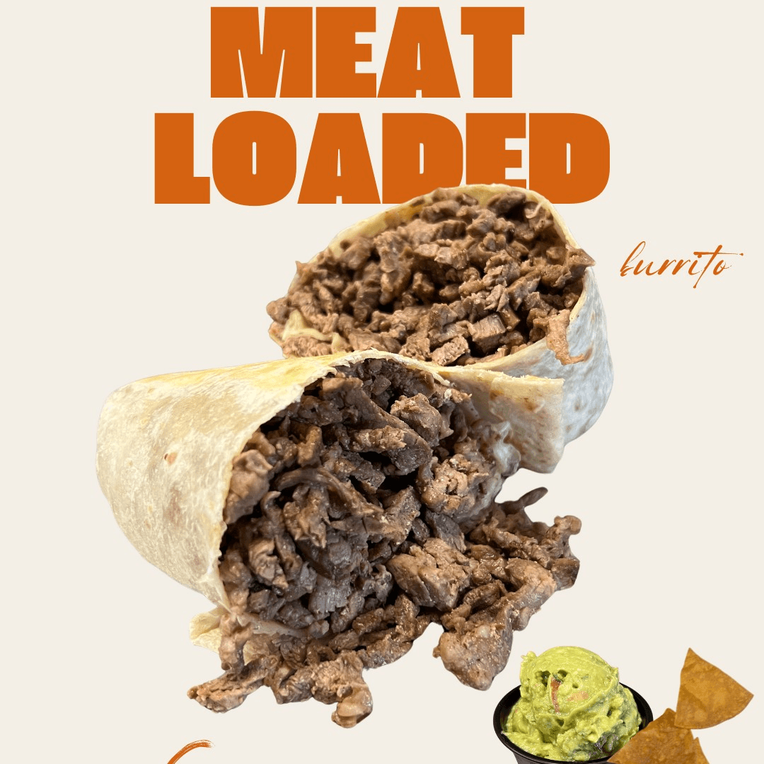 Rice, Whole Pinto Beans, Cheese, Lettuce, Onions, Tomato, Avocado and your choice of Traditional Meat or Guisado