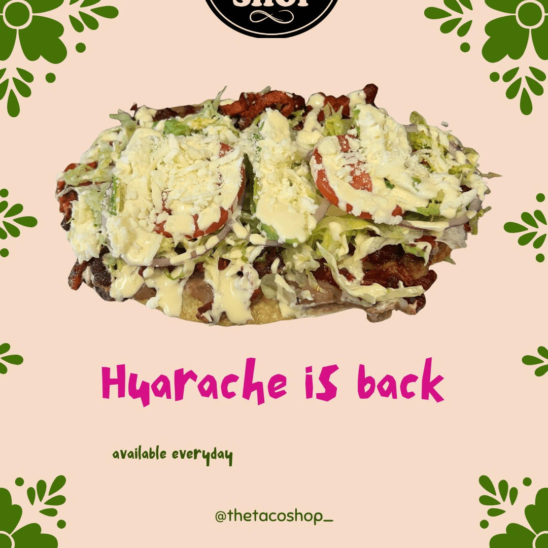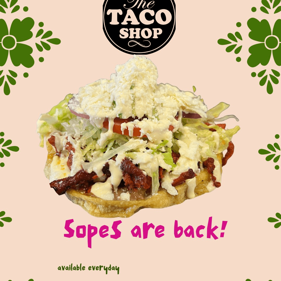 A long, hand-formed corn masa base grilled to a golden crisp, spread with refried beans and topped with your choice of savory filling, fresh lettuce, diced onion, ripe tomato, cream, crumbled queso fresco, and creamy avocado.
