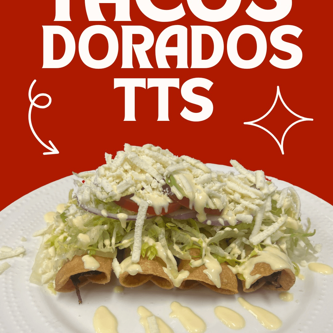 4 fried taquitos with your choice of filling, chicken or potato. Topped with lettuce. red onions, tomato, avocado, cream and queso fresco.