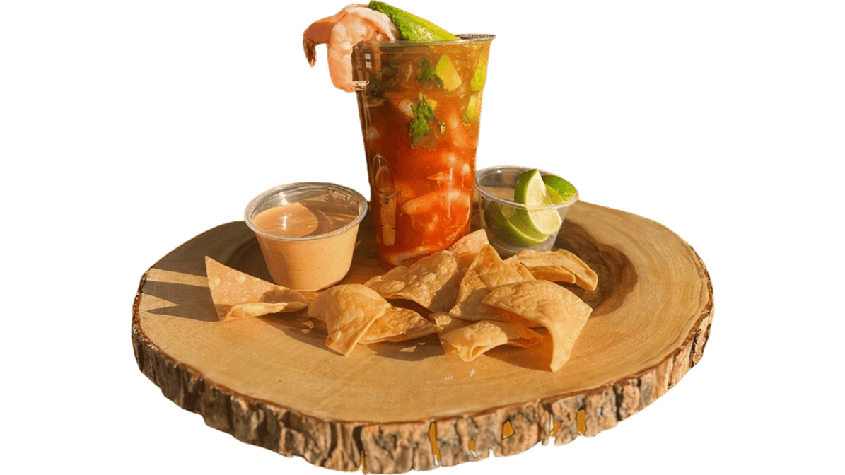 Shrimp Cocktail Cup comes with side of chips, crackers, habanero salsa