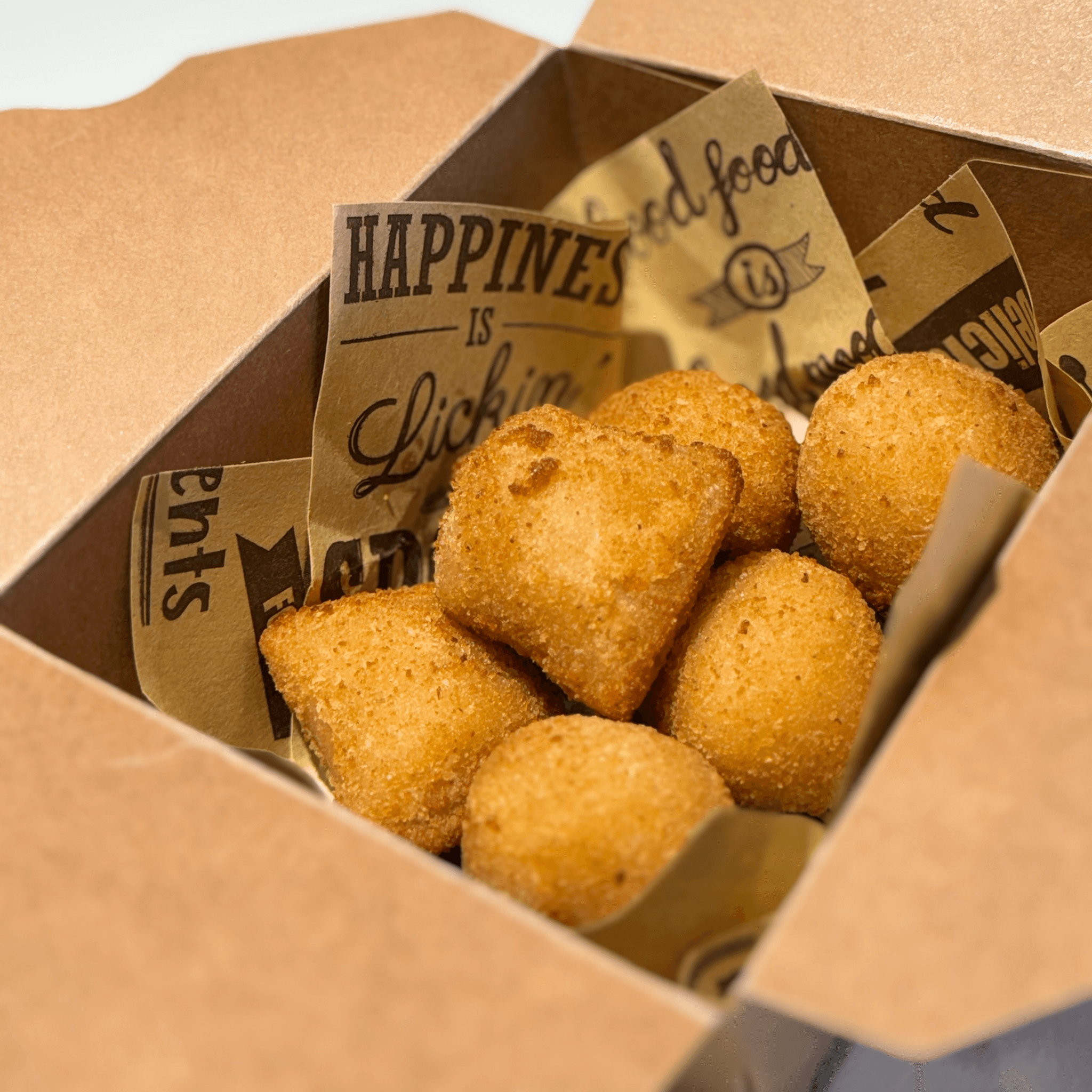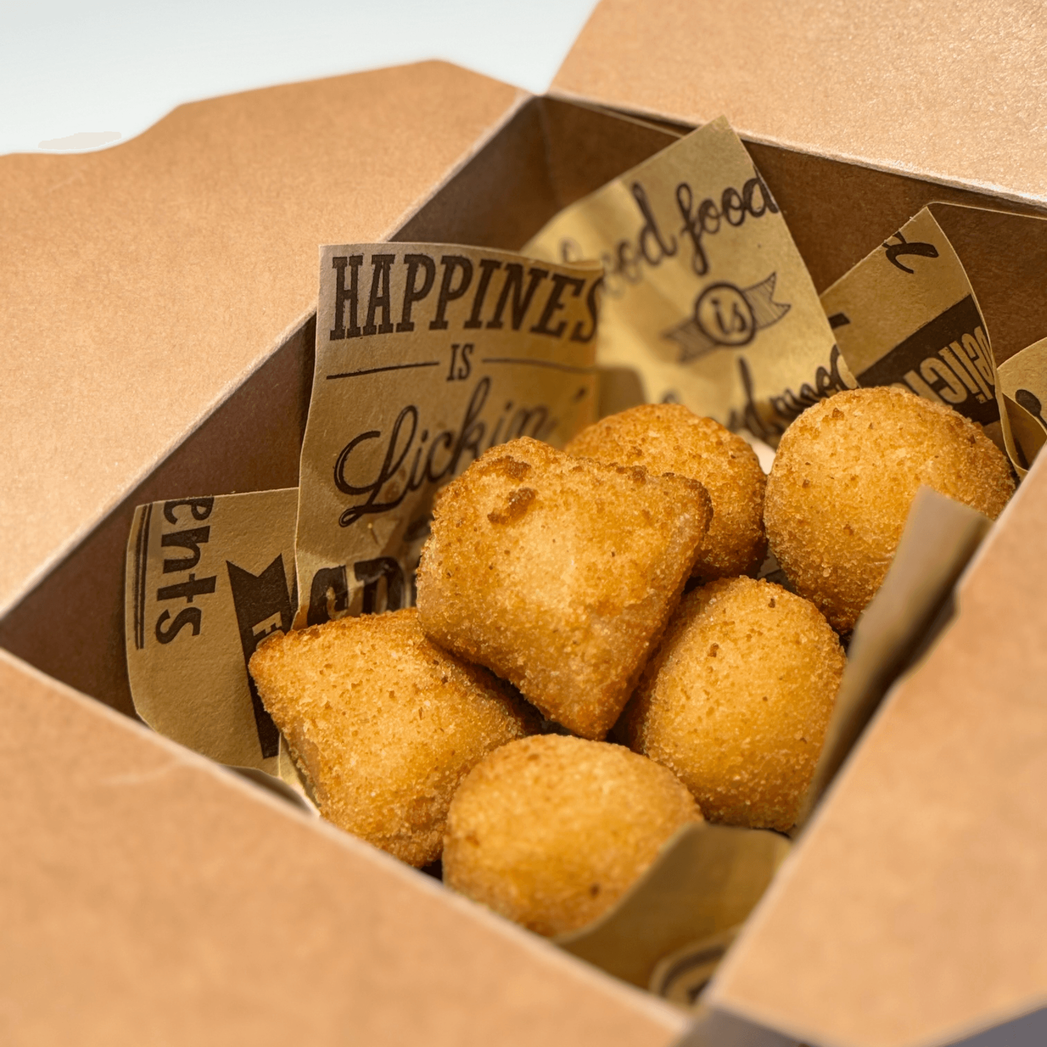 One of Brazil’s most beloved snacks. A golden, crispy croquette filled with seasoned shredded chicken, shaped by hand and fried to perfection.