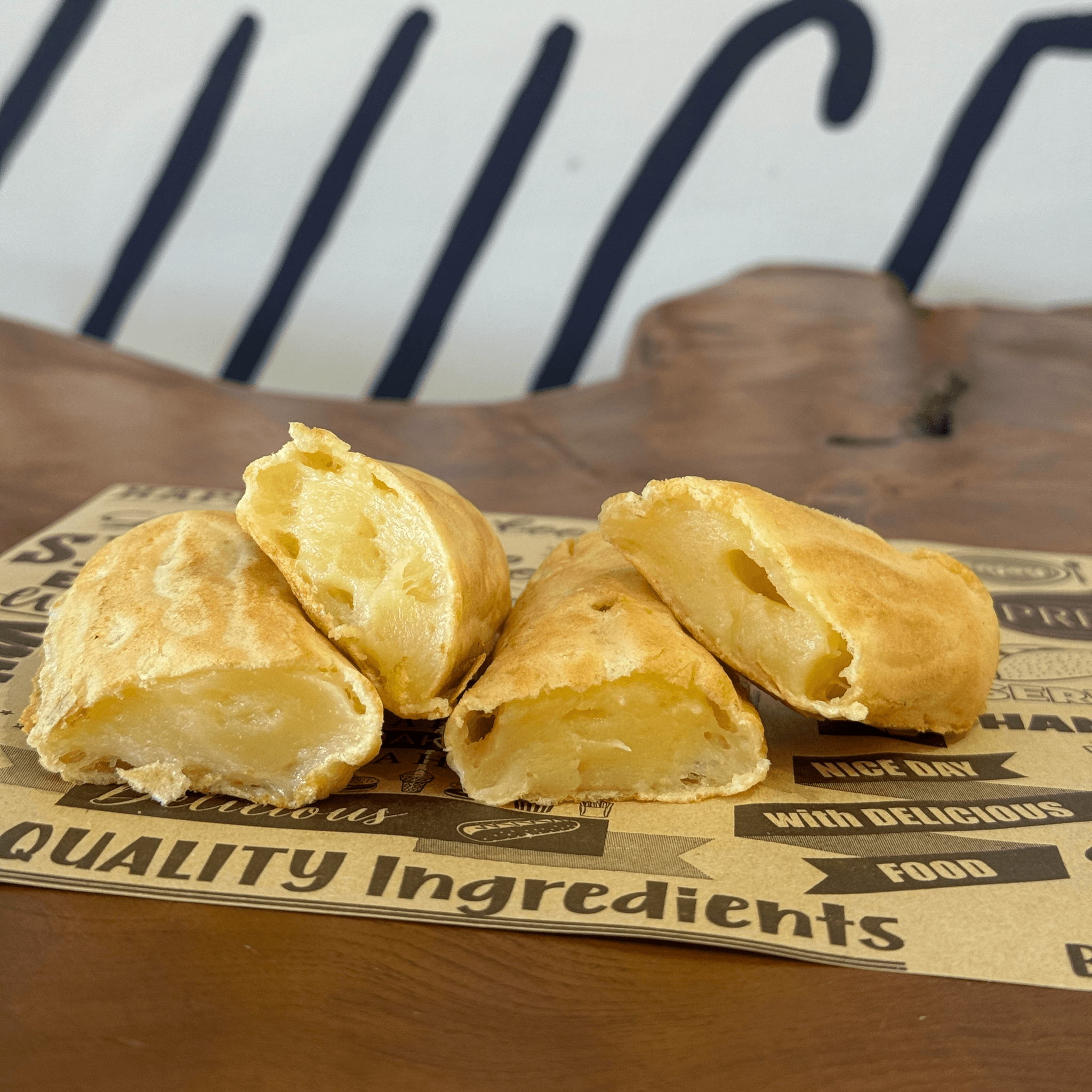 A popular comfort snack with a delicate crunch and a warm, flavorful center.